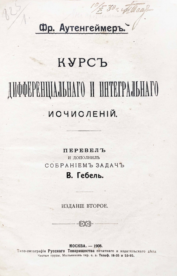 Владельческий переплет. Потертости на переплете. Блок расшатан. Владельческая подпись на титуле. Пятна на страницах. 2-е изд. Перевел и дополнил задачами В. Гебель. 22 см