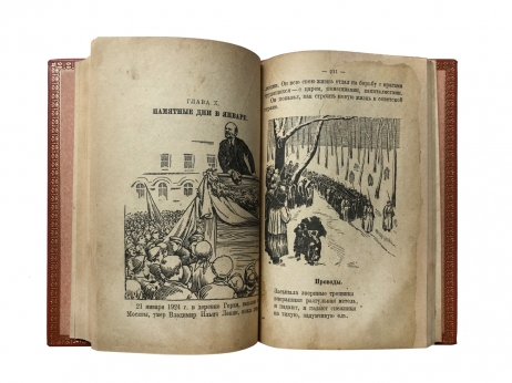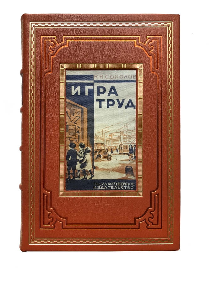 Цельнокожаный переплет с золотым тиснением и иллюстрацией на передней крышке. Издательская обложка сохранена в перелете.