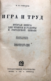 Игра и труд - вторая книга для чтения и работы в городской школе. Учебное пособия для школ I ступени. В тексте множество черно-белых иллюстраций. Книга со множеством текстов на разные темы, поделенные на главы: Из летних воспоминаний, За работу, Город осенью, Будем сильны и здоровы, К празднику Октябрьской революции, Наступление зимы, Зимой за городом, В холодных и жарких странах, Как мы живем, Приближение весны, К первомайскому празднику, Весенние работы. Книга представляет историческую и культурную ценность!