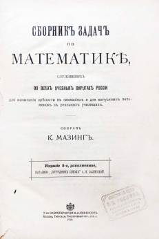 Сборник задач по математике, служивших во всех учебных округах России для испытания зрелости в гимназиях и для выпускных экзаменов в реальных училищах