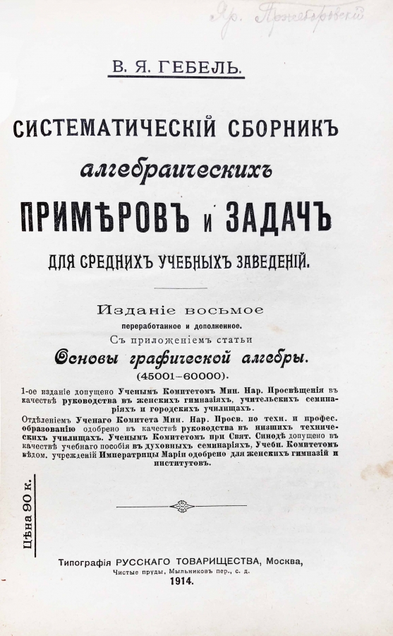 Гебель Валериан Яковлевич (1860-) — педагог-математик, автор учебников по алгебре, геометрии, тригонометрии и механике, пособий по метрической системе мер.