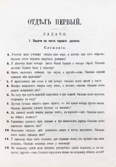 Книга "Сборник задач и примеров для обучения начальной арифметике" Выпуск 1. Задачи и примеры на числа первой сотни и на простейшие дроби