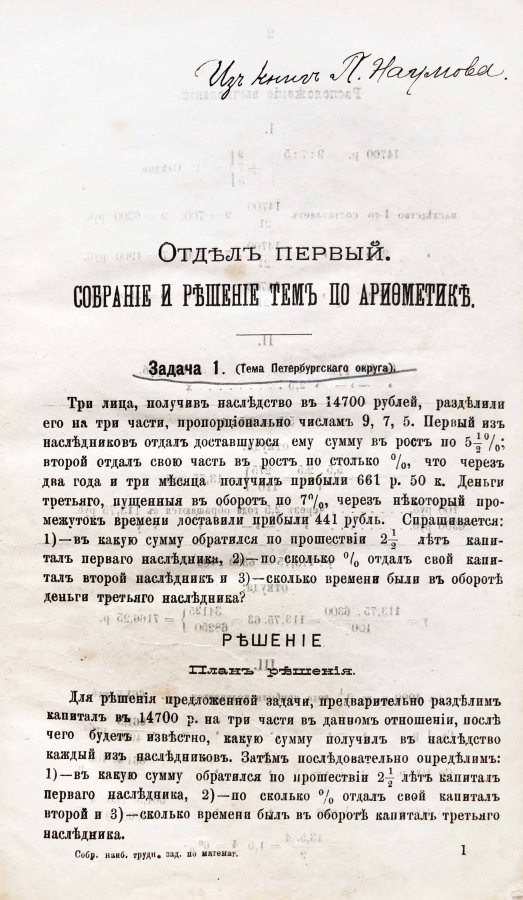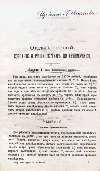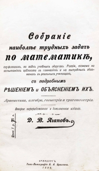 Полное название: Собрание наиболее трудных задач по математике, служивших, во всех учебных округах России, темами на испытаниях зрелости в гимназиях и на выпускных экзаменах в реальных училищах, с подробным решением и объяснением их