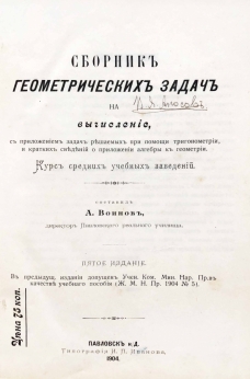 Сборник геометрических задач на вычисление, с приложением задач, решаемых при помощи тригонометрии и кратких сведений о приложении алгебры к геометрии. Курс средних учебных заведений.