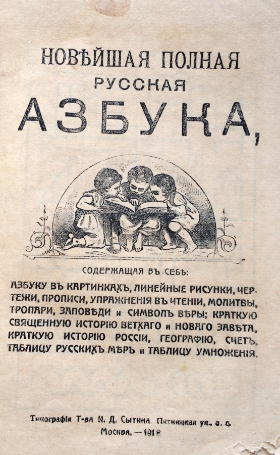 Представленная выше «Новейшая полная русская Азбука» является типичной для букварей, которые рассылал во все уголки России известный издатель И. Д. Сытин. Он выпустил миллионы экземпляров дешевых учебников, общеобразовательных и школьных пособий, популярных книг для народного чтения, библиотечек для самообразования. Кроме непосредственно азбуки издание содержит: линейные рисунки, чертежи, прописи, упражнения в чтении, молитвы, тропари, заповеди, краткую Священную историю, краткую историю России, географию, счеты, таблицу русских мер и таблицу умножения. Редкость, как и все азбуки старого времени. Книга представляет историческую и культурную ценность!