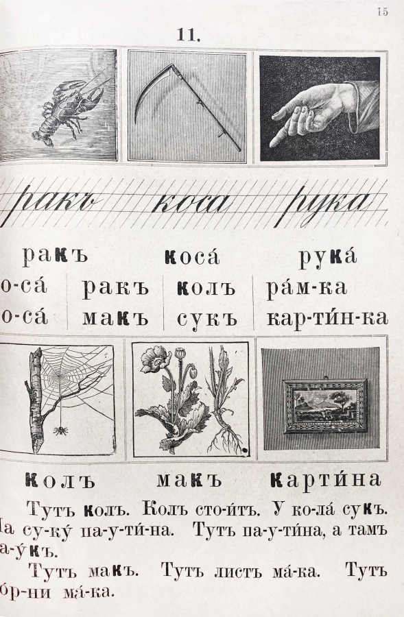 Первая книга для обучения русскому языку в инородческих училищах. Азбука и первая, после азбуки, книга для чтения с материалом для устных и письменных упражнений.