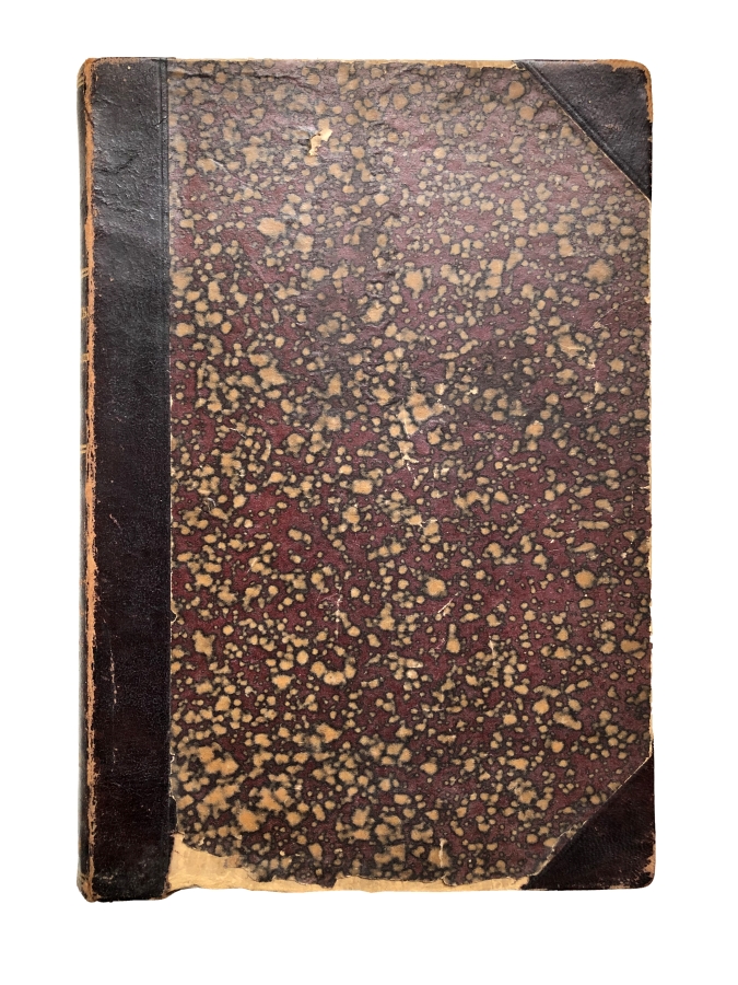 Владельческий полукожаный переплет. Есть потертости на переплёте. Блок расшатан. Увеличенный формат.