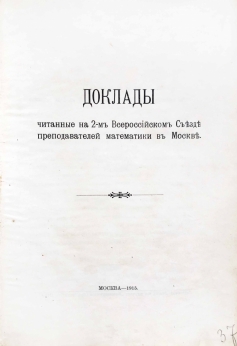Книга "Доклады читанные на 2-м Всероссийском Съезде преподавателей математики в Москве"