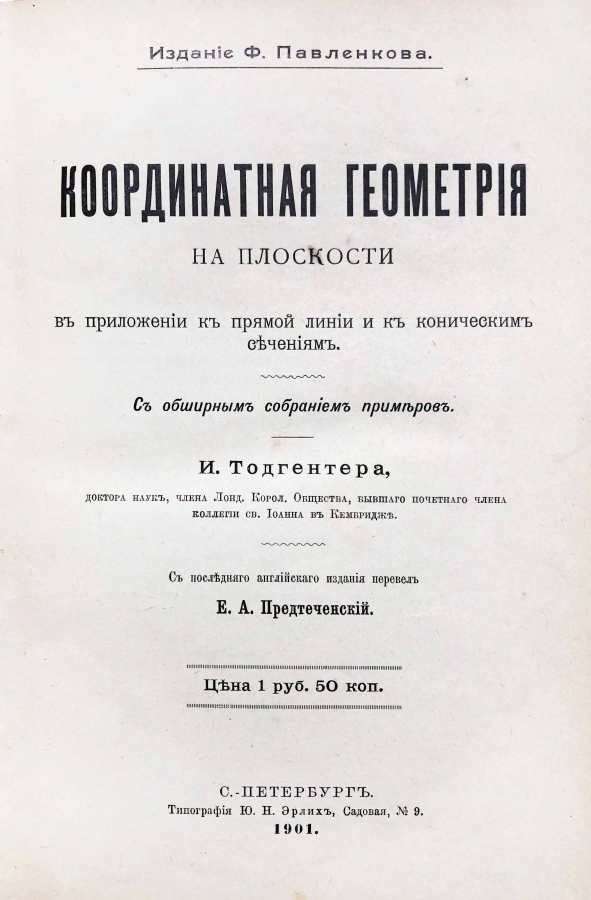 Книга "Координатная геометрия на плоскости в приложении к прямой линии и к коническим сечениям"