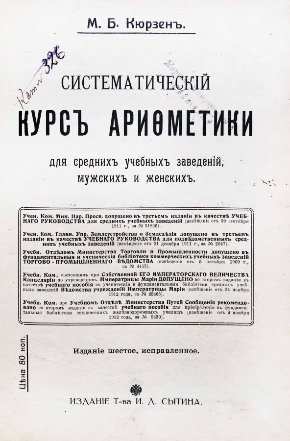 Систематический курс арифметики для средних учебных заведений, мужских и женских.
