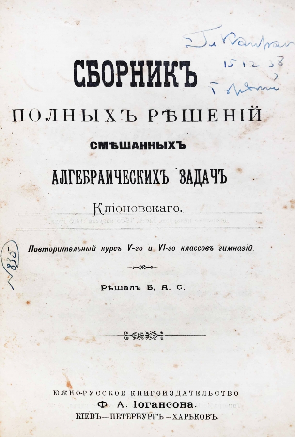 2) Решал Б. А. С. Сборник полных решений смешанных алгебраических задач Клионовского. Повторительный курс V и VI классов гимназий