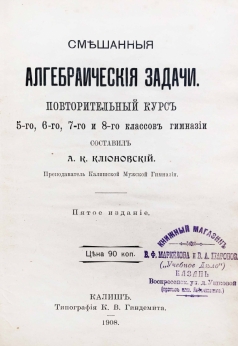 1) Клионовский А. К. Смешанные алгебраические задачи. Повторительный курс 5,6,7 и 8 классов гимназии