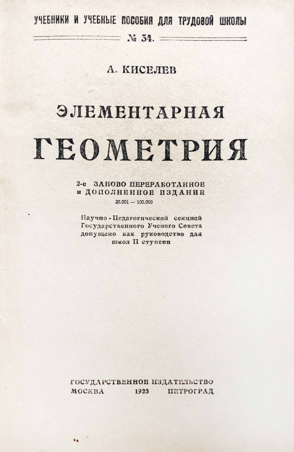 Знаменитый учебник «Элементарная геометрия» известного российского и советского педагога-математика Андрея Петровича Киселёва, входящий в золотой фонд лучших учебников по математике.