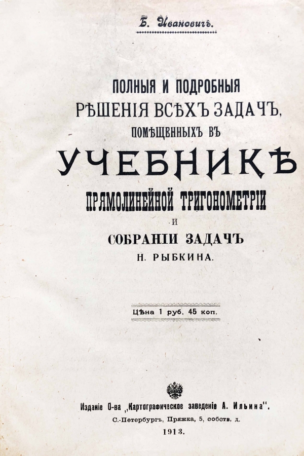 Книга "Полные и подробные решения всех задач, помещенных в учебнике прямолинейной тригонометрии и собрании задач Н. Рыбкина"
