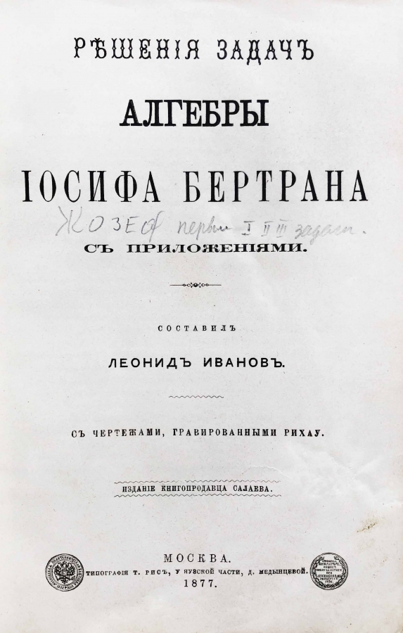 Книга "Решения задач алгебры Иосифа Бертрана"