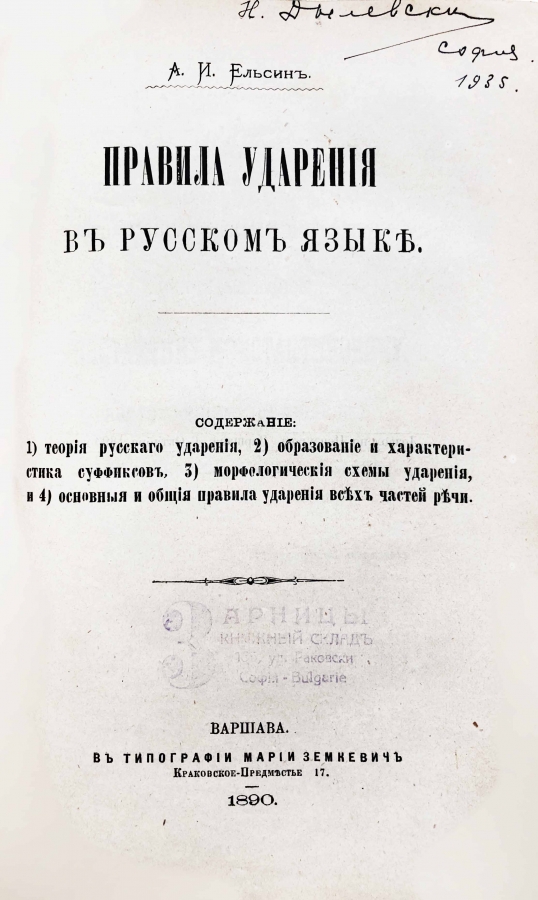 Главные разделы учебника Ельсин: Теория русского ударения, Образование и характеристика суффиксов, Морфологические схемы ударения, Основные и общие правила ударения всех частей речи.