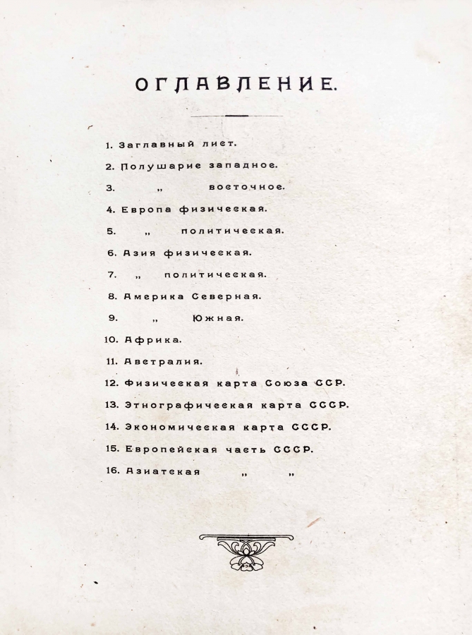 Оглавление: Западное и Восточное полушария, Европа, Азия, Южная и Северная Америка, Африка, Австралия, СССР.