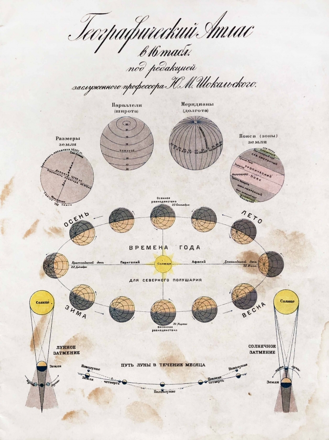 Географический атлас в 16 таблицы под редакцией заслуженного деятеля науки Ю.М. Шокальского.