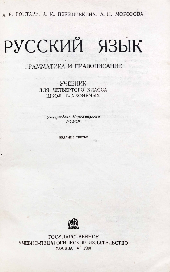В учебнике разбирается грамматика и правописание для 4 класса школ глухонемых.