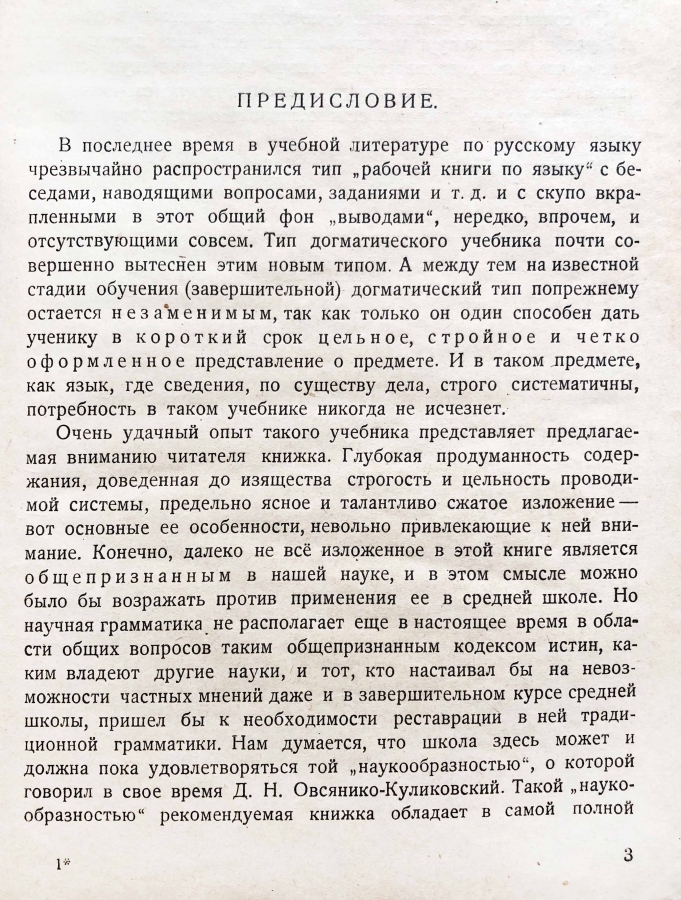 Из предисловия: В последнее время в учебной литературе по русскому языку чрезвычайно распространился тип "рабочей книги по языку" с беседами, наводящими вопросами, заданиями и т. д. и со скупо вкрапленными в этот общий фон "выводами", нередко, впрочем, и отсутствующими совсем. Тип догматического учебника почти совершенно вытеснен этим новым типом. А между тем на известной стадии обучения (завершительной) догматический тип по-прежнему остается незаменимым, так как только он один способен дать ученику в короткий срок цельное, стройное и четко оформленное представление о предмете. И в таком предмете, как язык, где сведения, по существу дела, строго систематичны, потребность в таком учебнике никогда не исчезнет. Очень удачный опыт такого учебника представляет предлагаемая вниманию читателя книжка.