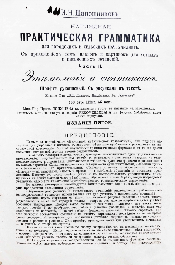 Новая практическая грамматика для городских и сельских начальных училищ с приложением тем, планов и картинок для устных и письменных сочинений.
