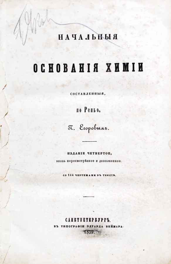 Книга "Начальные основания химии, составленные по Реньо П. Егоровым"