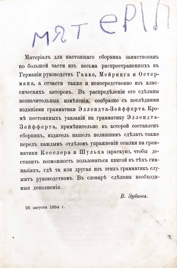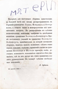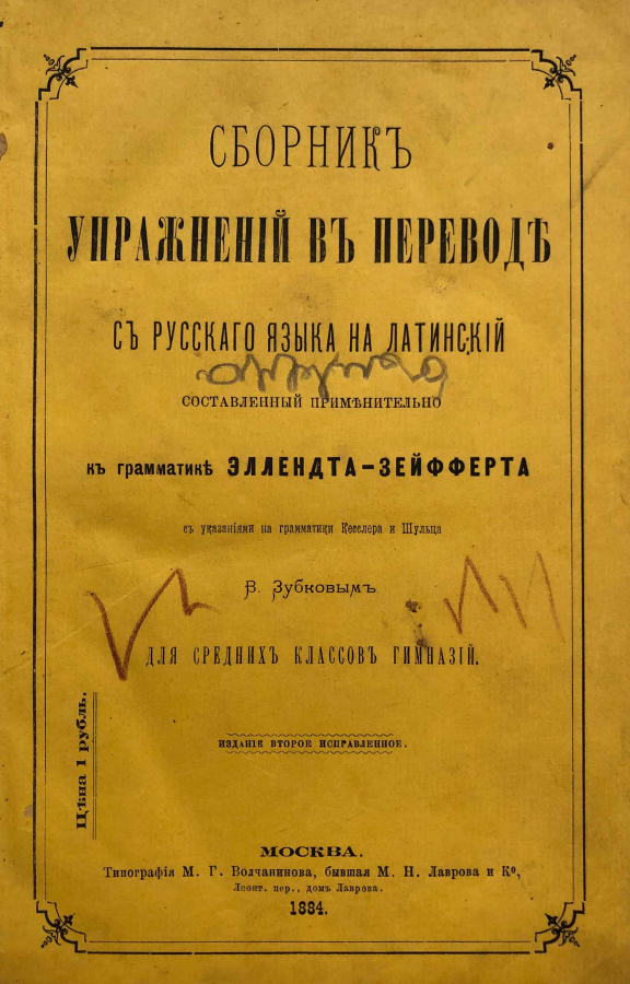 Сборник упражнений, составленный применительно к грамматике Эллендта-Зейфферта с указаниями на грамматики Кесслера и Шульца. Для средних классов гимназий.