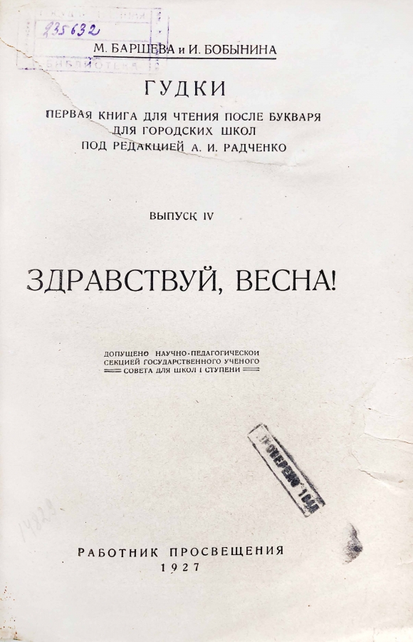 Первая книга по чтению после букваря для городских школ под редакцией А. И. Радченко. Сборник текстов и стихотворений для детей.