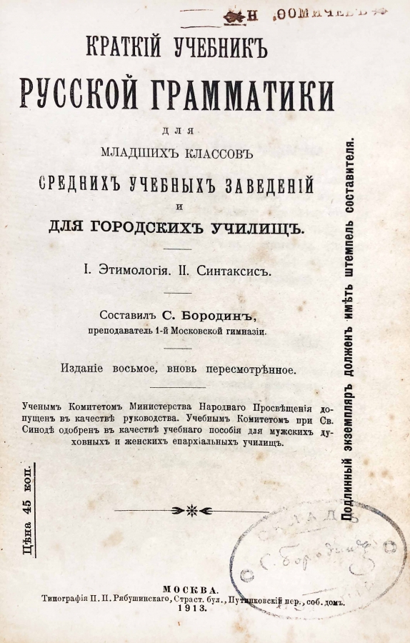 Составил Сергей Михайлович Бородин, преподаватель 1-й Московской гимназии.