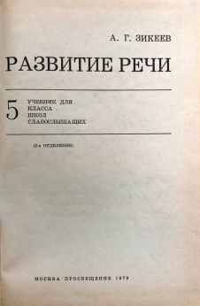 Книга "Развитие речи" для 5-го класса школы слабослышащих (2-е отделение)