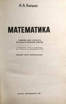Учебник математики для шестого класса вспомогательной школы. Рекомендовано к изданию Главным управлением школ Министерства просвещения СССР.