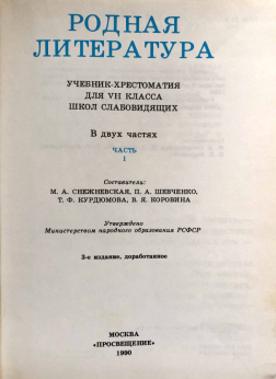 Данный учебник воспроизводит текст переработанного издания учебника-хрестоматии «Родная литература» для 7 класса средней школы. (М.: Просвещение, 1989). Учебник-хрестоматия подготовлен к печати кандидатом педагогических наук И. В. Югановой.