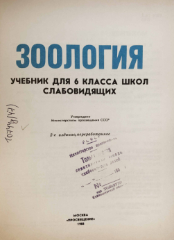 Книга "Зоология" Учебник для 6-го класса школ слабовидящих