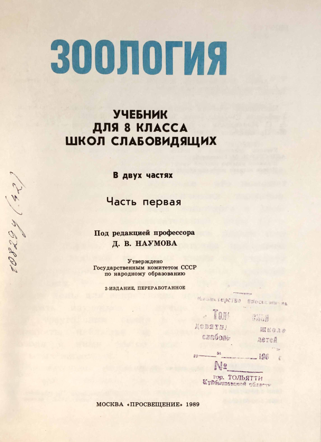 Книга "Зоология" Учебник для 8-го класса школ слабовидящих В двух частях. Часть 1.