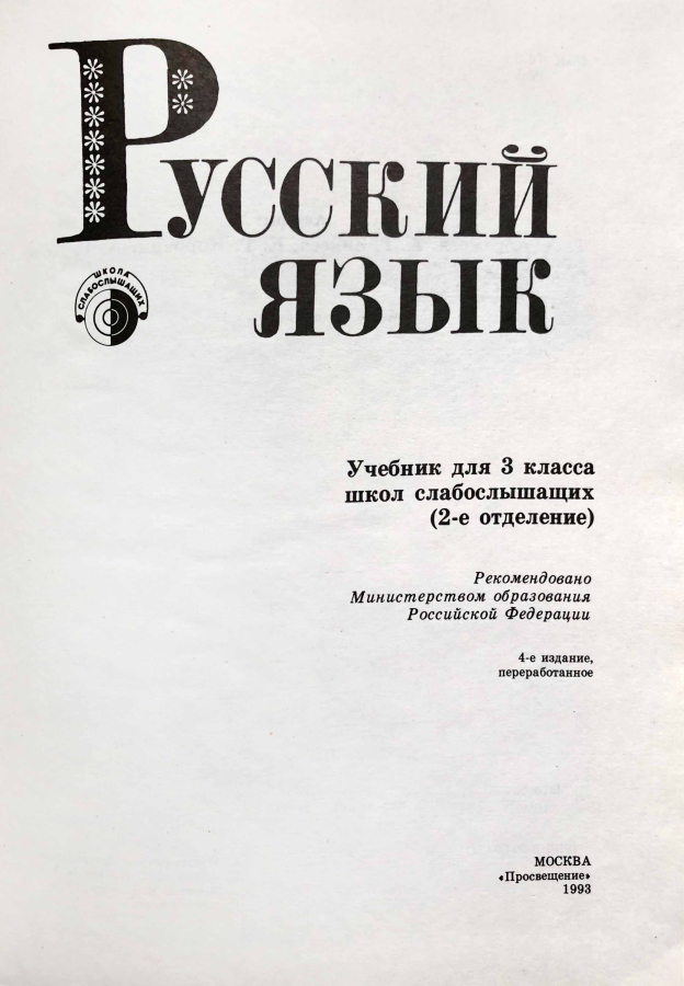 Учебник по курсу русского языка в 3 классе специальных образовательных учреждений для слабослышащих детей.