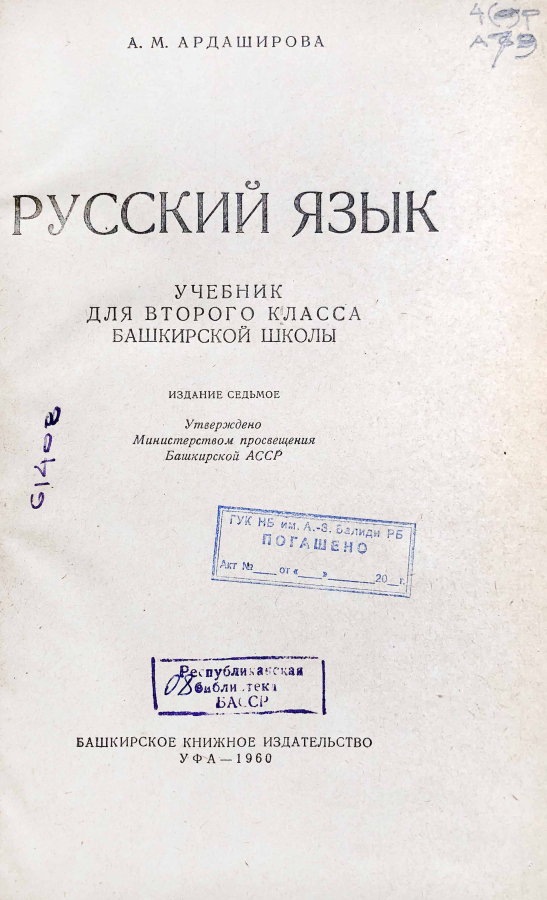 Книга "Русский язык" учебник для 2 класса башкирской школы