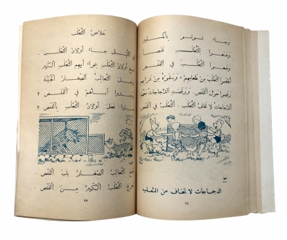 Учебник написан на арабском языке с картинками. Это учебник, разработанный в Ливане и включающий всё необходимое для маленьких детей, которые только учатся говорить по-арабски.