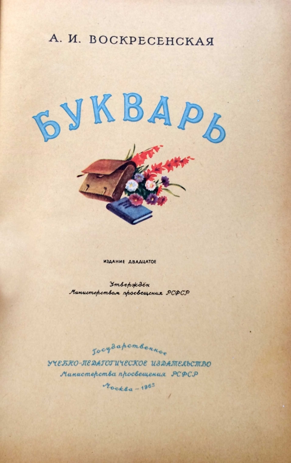 Букварь педагога и методиста по русскому языку А. И. Воскресенской. Букварь — это книга, которая первая давала советским детям образование, любовь к Родине, близким. Прекрасное пособие для обучения чтению ребёнка до школы. Очень хорошо построена методика порядка изучения букв, ребенок легко подключается к изучению чтения. Александра Ильинична Воскресенская — советский педагог и методист по русскому языку в начальной школе, автор букварей для сельских школьников. Член-корреспондент Академии педагогических наук РСФСР (1950), заслуженный учитель школы РСФСР.