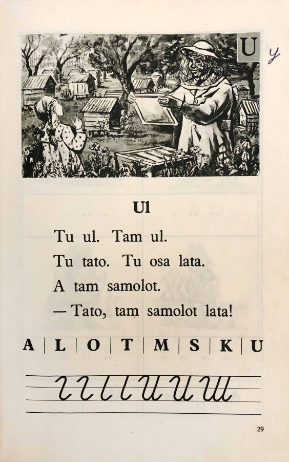 Как и в других букварях, книга начинается с простых букв и слогов, а заканчивается стихами и легкими рассказами для чтения.