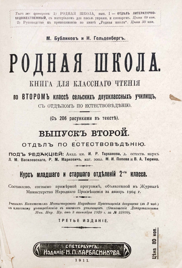 Книга для классного чтения во 2-м классе сельских двухклассных училищ, с отделом по естествоведению с 206 рисунками в тексте.