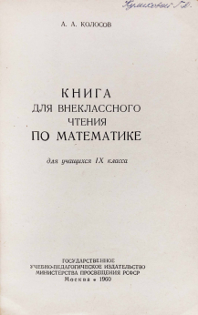 Книга "Книга для внеклассного чтения по математике" 9 класс