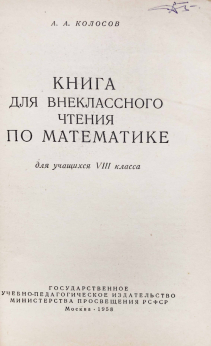 Книга "Книга для внеклассного чтения по математике" 8 класс