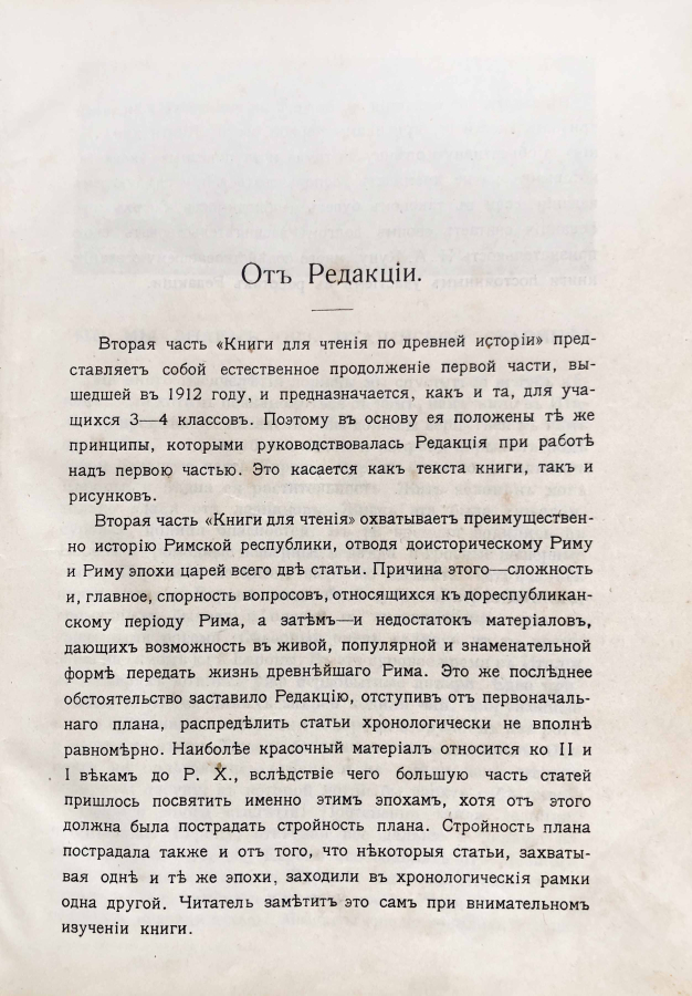 Из предисловия: Вторая часть «Книги для чтения» охватывает преимущественно историю Римской республики, отводя доисторическому Риму и Риму эпохи царей всего две статьи. Причина этого сложность и, главное, спорность вопросов, относящихся к до республиканскому периоду Рима, а затем и недостаток материалов, дающих возможность в живой, популярной и знаменательной форм передать жизнь древнейшего Рима.