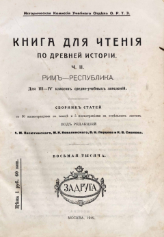 Книга "Книга для чтения по древней истории" Часть 2: Рим — республика Для III-IV классов средне-учебных заведений. Сборник статей