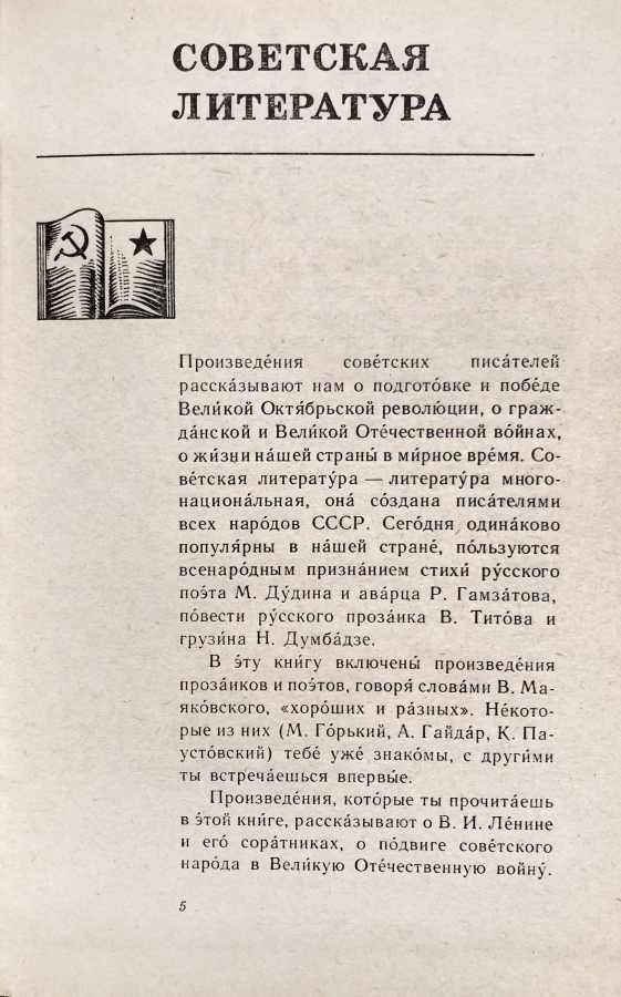 Пособие предназначено для учащихся национальных школ РСФСР. Оно поможет учащимся в овладении русским языком и будет способствовать закреплению навыков чтения. Произведения, помещенные в пособии, объединены в четыре тематических раздела.
