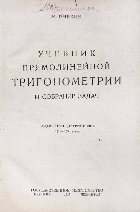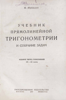 Рыбкин Н. А. Учебник прямолинейной тригонометрии и собрание задач