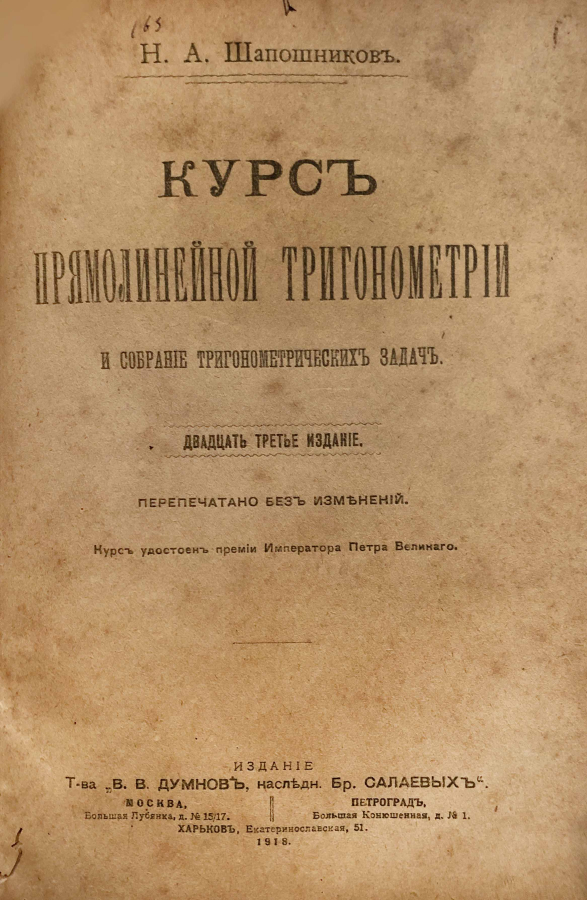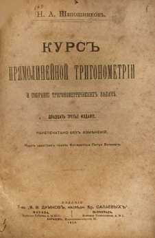 Шапошников Н. А. Курс прямолинейной тригонометрии и собрание тригонометрических задач