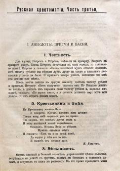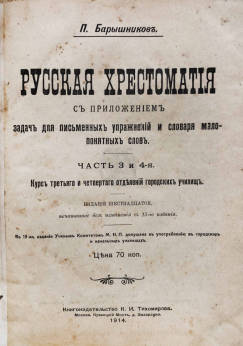Русская хрестоматия с приложением задач для письменных упражнений и словаря малопонятных слов. Курс третьего и четвертого отделений городских училищ.