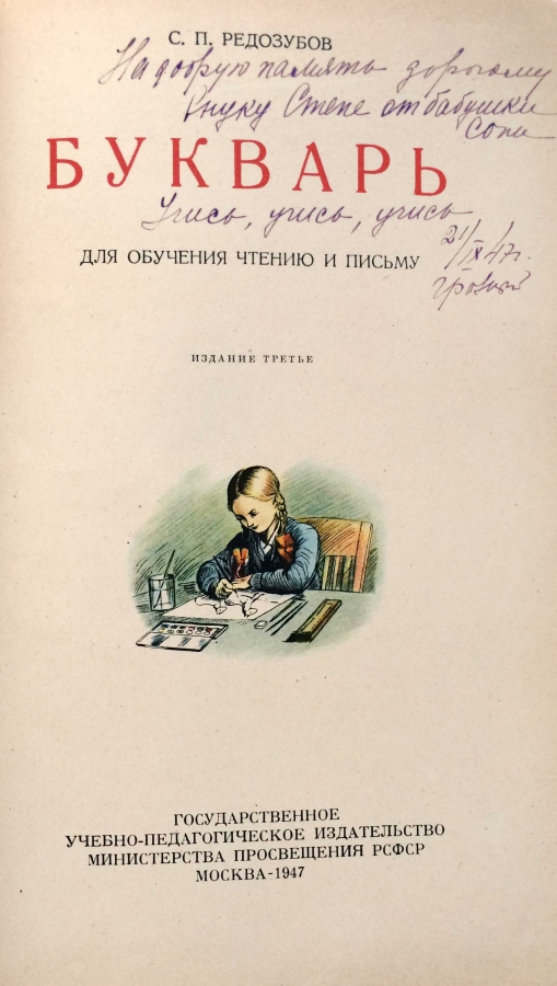 Первая книга по русскому языку для начальной школы. Книга, по которой первоклассники могли учиться читать и писать. Однако основная задача пособия состоит в том, чтобы начать формировать у детей любознательность, вызвать у ребенка стремление приобретать новые знания, развивать пытливый ум и усидчивость. Сергей Поликарпович Редозубов — советский педагог, кандидат педагогических наук, автор более 50 печатных работ по русскому языку и методике его преподавания.