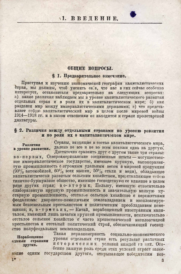 Из введения: Приступая к изучению экономической географии капиталистических стран, мы должны, чтоб уяснить себе, что нас в них сейчас особенно интересует, остановиться предварительно на следующих вопросах: a) какие различия наблюдаем мы в уровне капиталистического развития отдельных стран и в роли их в капиталистическом мире; б) как разделен мир между империалистическими державами; в) что представляет собою капиталистический мир в целом после мировой войны 1914-1918 гг. и в каком отношении он находится к стране пролетарской диктатуры.